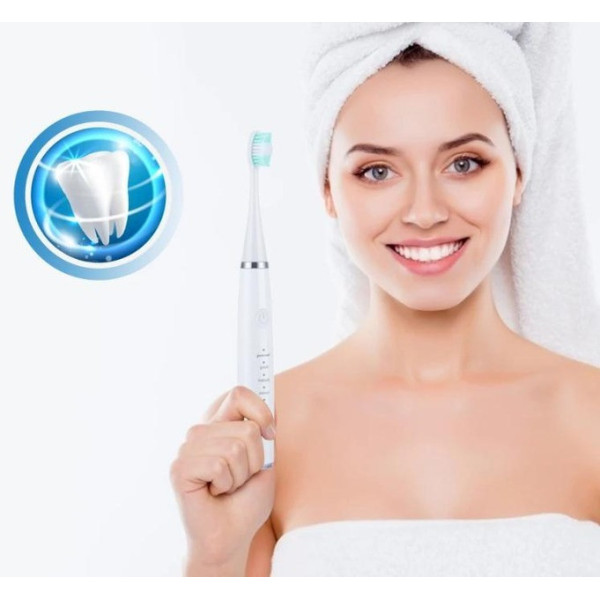 Прилад працює на ультразвукі з частотою 31 000 вібрацій за хвилину, що гарантує ретельне очищення навіть важкодоступних зон. П'ять режимів роботи дають змогу підібрати оптимальну інтенсивність для чутливих або міцних зубів. До комплекту входять змінні щітки та металеві скалер-насадки для комплексного догляду.