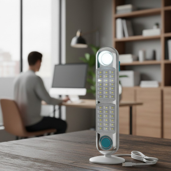 Світлодіодний ліхтар, це панель із вбудованими 60 LED-лампочками й акумулятором. Великий радіус освітлення. Акумулятор світлодіодної лампи розрахований на 6-12 годин безперебійного освітлення. Вбудована ручка для транспортування лампи та ніжка для зручного розташування пристрою у вертикальному положенні також є кріплення на стіну.