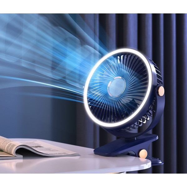 Акумуляторний вентилятор з LED-підсвіткою VHG F03 настільний і портативний, 3 швидкості, 720° обертання
