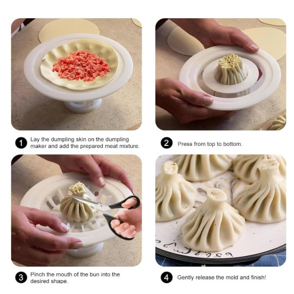 Апарат для ліплення хінкалі Khinkali Maker — це практичний кухонний помічник, який дає змогу швидко й акуратно формувати ідеальні хінкалі з рівними складками. Пристрій створений для домашнього та професійного використання, підходить для приготування пельменів, вареників та інших виробів із тіста.