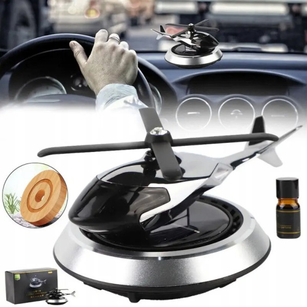 Ароматизатор автомобільний багаторазовий із сонячною панеллю у формі вертольота чорний