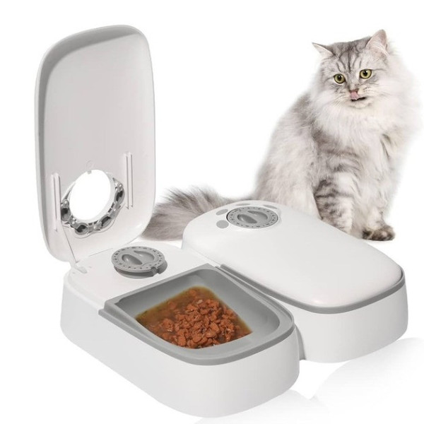 Міцний корпус із безпечного ABS-пластику (без BPA) гарантує довговічність і безпеку використання. Годівниця працює від мережі або однієї батарейки AA, що робить її зручною як удома, так і в поїздках.