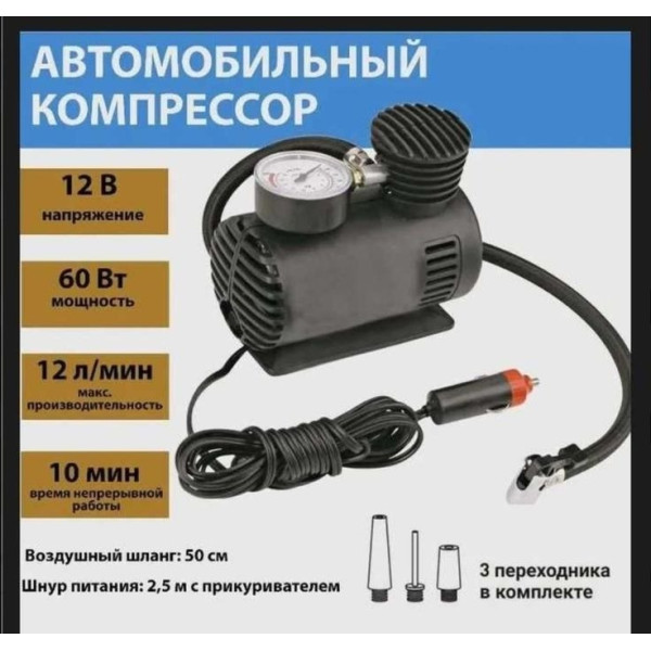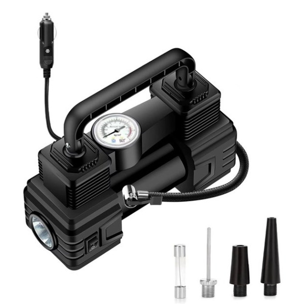 Компактний розмір і легка вага роблять компресор зручним для зберігання в багажнику та перевезення. Міцний корпус з ABS-пластику та металу гарантує довговічність і стійкість до пошкоджень. Багатофункційний комплект насадок розширює можливості використання, перетворюючи пристрій на універсальний аксесуар для автомобіліста.