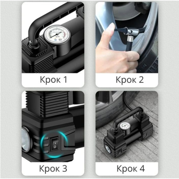 Автокомпресор SCK619 портативний Air Pump 12 В стрілковий з ліхтарем