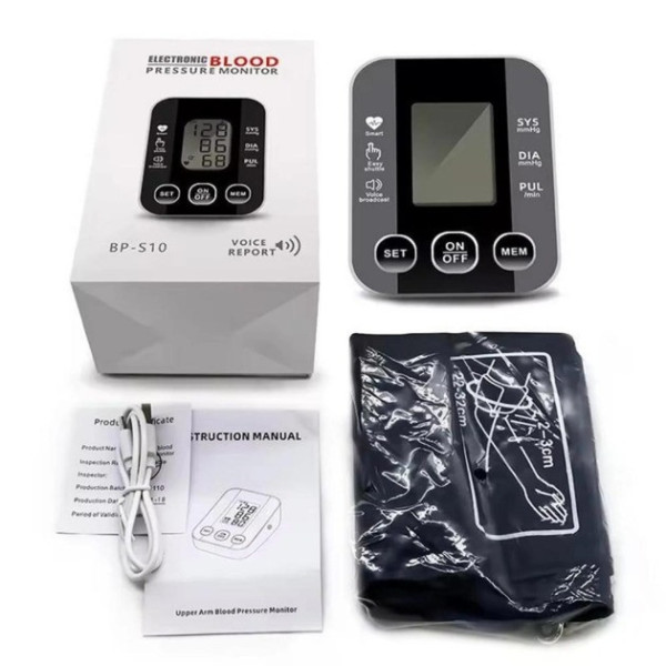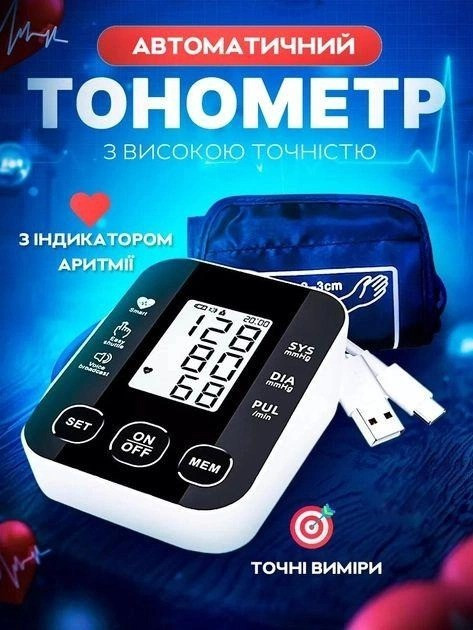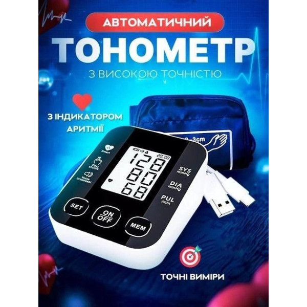 Автоматичний тонометр UKC BP-S10 BR-510 на плече з дисплеєм, вимірювання тиску, живлення USB і батарейки