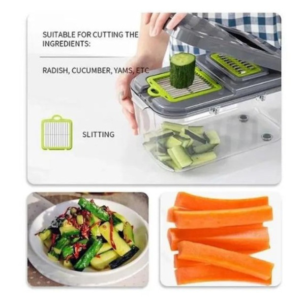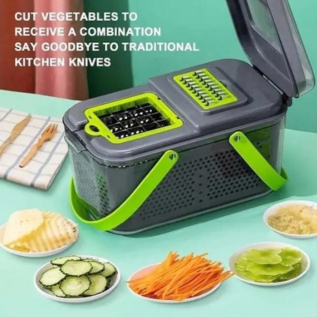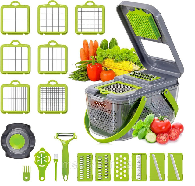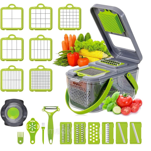 Багатофункціональна овочерізка MA-22/ мультислайсер 22 в 1 з контейнером шатківниця, нарізання та подрібнення овочів і фруктів