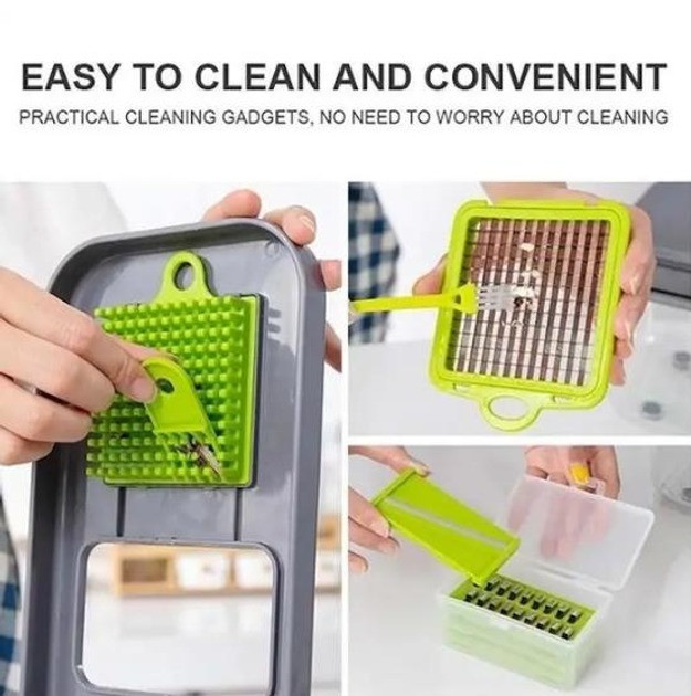 Багатофункціональність 22 в 1 — насадки для нарізування, шаткування, тертки, кубиків, соломки, часнику та цибулі