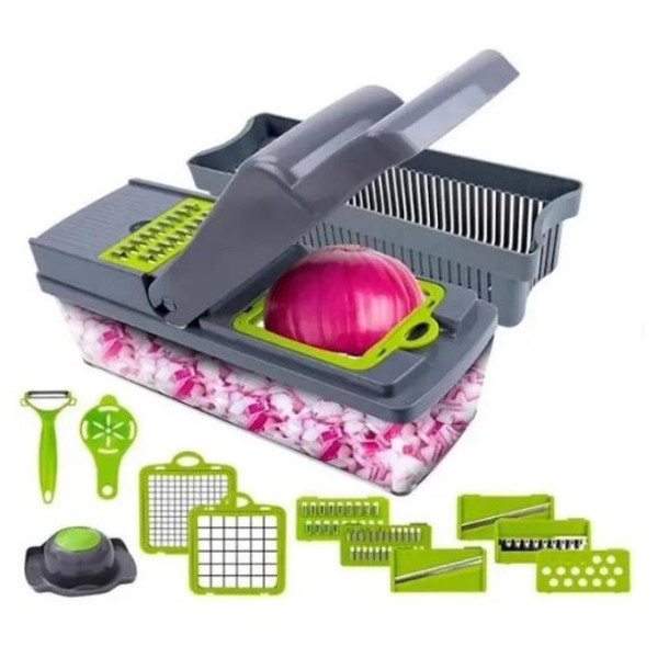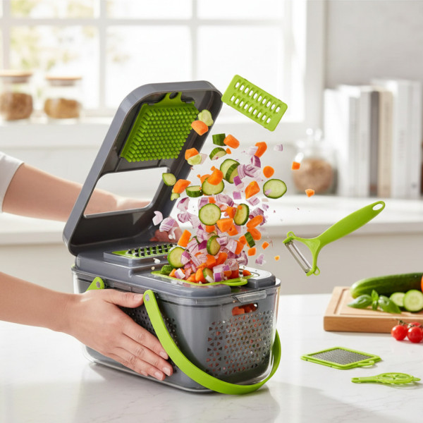 Багатофункціональна овочерізка MA-22 — універсальний кухонний інструмент, який полегшує приготування їжі. За допомогою цього мультислайсера легко нарізати, шаткувати, терти та подрібнити овочі, фрукти, часник, цибулю та інші продукти. Компактний контейнер збирає нарізку, зберігаючи лад на робочій поверхні.