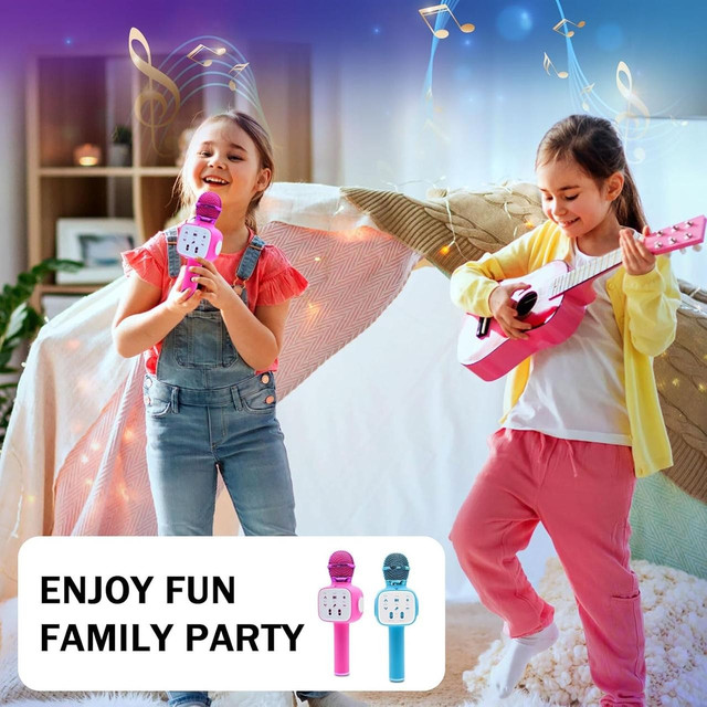 Подаруйте своєму малюку яскравий світ музики та розваг із бездротовим мікрофоном Wepai! Цей мікрофон поєднує функції караоке та Bluetooth-динаміка, забезпечуючи безліч можливостей для веселощів. Легкий і зручний у використанні, він ідеально підходить для дітей від 3 до 12 років і стане чудовим подарунком на Різдво, день народження або інше свято.