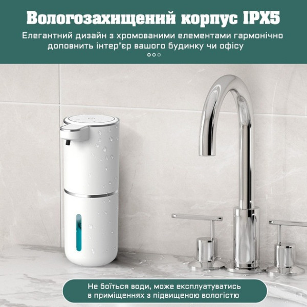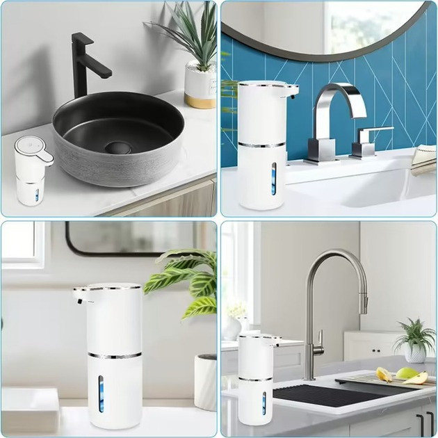 Він автоматично надає мило у формі піни завдяки вбудованому інфрачервоному сенсору. Підходить для кухні, ванної, санвузла, офісу або громадських місць. Працює від вбудованого акумулятора, підтримує настільне встановлення або кріплення на стіну.