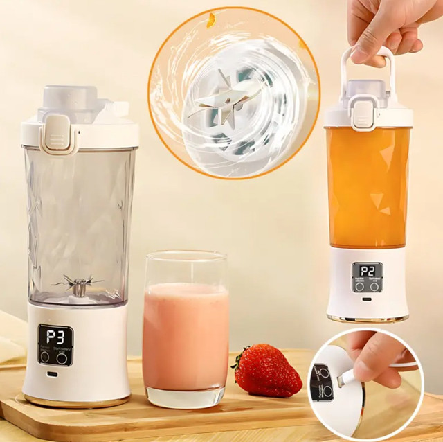 Корпус виготовлений із безпечного харчового пластику Tritan із силіконовими вставками, що гарантує довговічність і безпеку використання. Вбудований акумулятор місткістю 3000 mAh забезпечує до 15 циклів роботи без підзаряджання, а повне заряджання через USB займає всього 2-3 години.