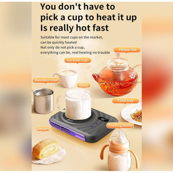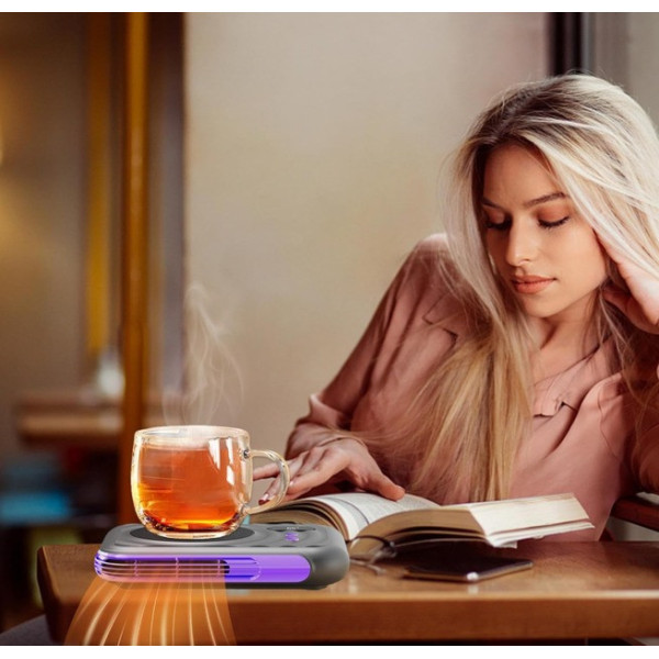 Стильний і компактний дизайн пристрою робить його ідеальним аксесуаром для дому, офісу або робочого столу. Підставка сумісна зі скляними, керамічними та металевими кухлями, термокухлями та келихами.