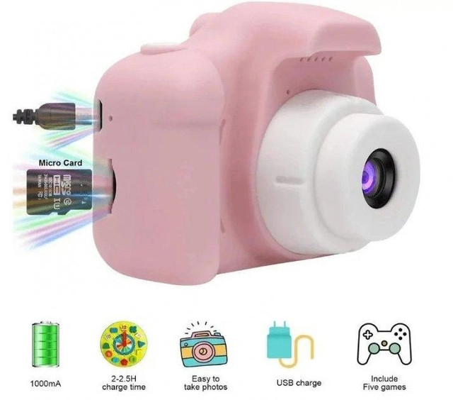 Цифрова дитяча камера призначена для фото- та відеознімання. Тепер ваша дитина зможе самостійно зробити свої перші фотографії. Ви зможете йому довірити користуватися такою камерою, позаяк вона складається із силіконового покриття, яке убезпечить її від будь-яких пошкоджень. У комплекті йде шнурок, за допомогою якого можна повісити камеру на шию дитині та убезпечити її падіння.