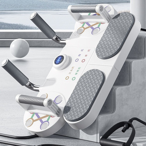 Фітнес-платформа LK202310-1 — універсальний домашній тренажер, який поєднує в собі дошку для планки, платформу для віджимань і трубчастий еспандер. Комплексно опрацьовує м'язи преса, грудей, рук, сідниць і спини, забезпечуючи ефективні тренування вдома.