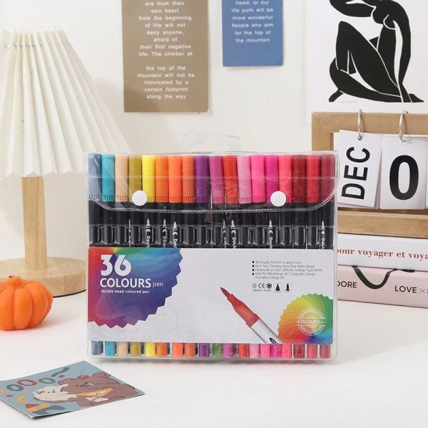 Набір художніх маркерів Alexvyan 36 кольорів із подвійними наконечниками — універсальний інструмент для творчості та малювання. Кожен маркер має тонкий наконечник 0,4 мм для промальовування деталей і гнучкий наконечник 1-4 мм для розфарбовування, створення тіней і ліній різної товщини.
