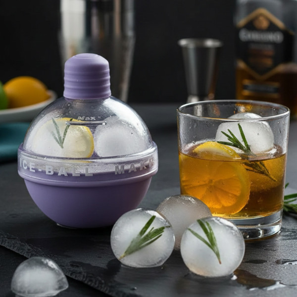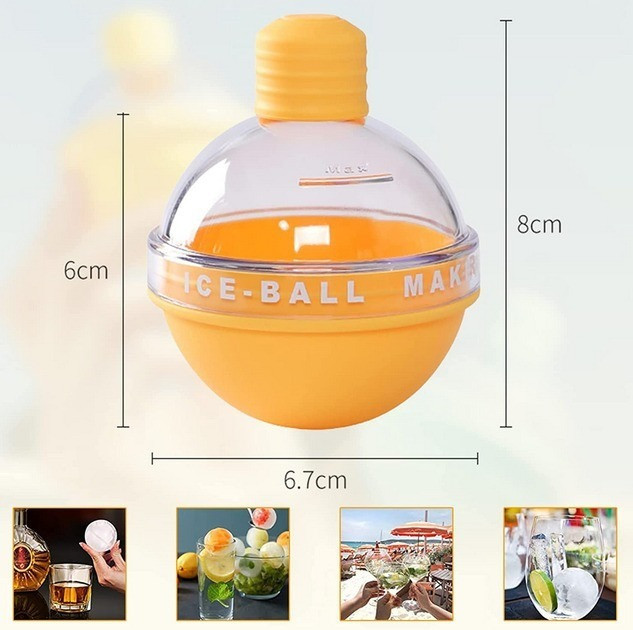 Силікон і AS матеріал добре закриваються, просто заповніть круглу форму для кубиків льоду водою й заморозьте її на 6-7 годинника, щоб створити кришталевий лід! Легко звільніть кульку льоду, зтиснувши силіконове дно.