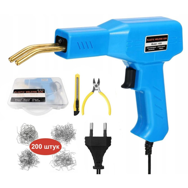 Гарячий степлер для ремонту пластику та бамперів із паяльником, комплект 200 скоб, 220 В