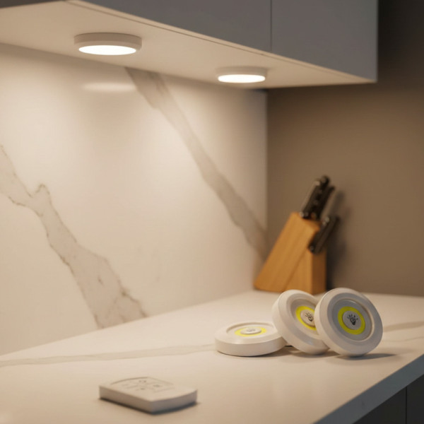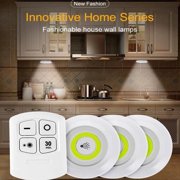 Для його встановлення не треба свердлити стіни, адже він кріпиться на двосторонній скотч. Світильник обладнаний ультрам'якими лампами, живлення яким здійснюється завдяки батарейкам ААА, а отже, ви зможете вмикати його незалежно від наявності електрики в будинку.