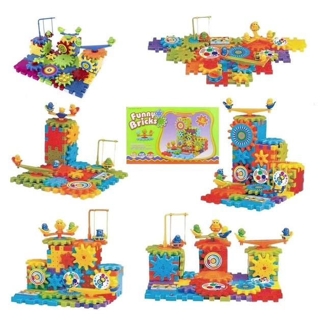 Крім основних деталей — блоків і шестерень, до комплекту додані різні фігурки та наклейки, які урізноманітнять і прикрасять вироби.