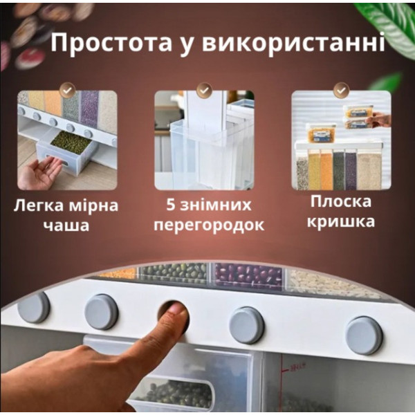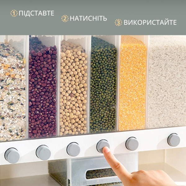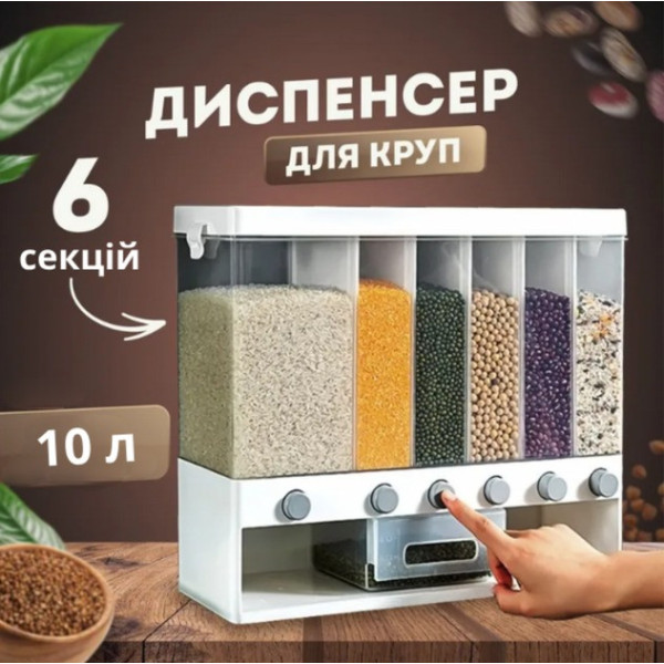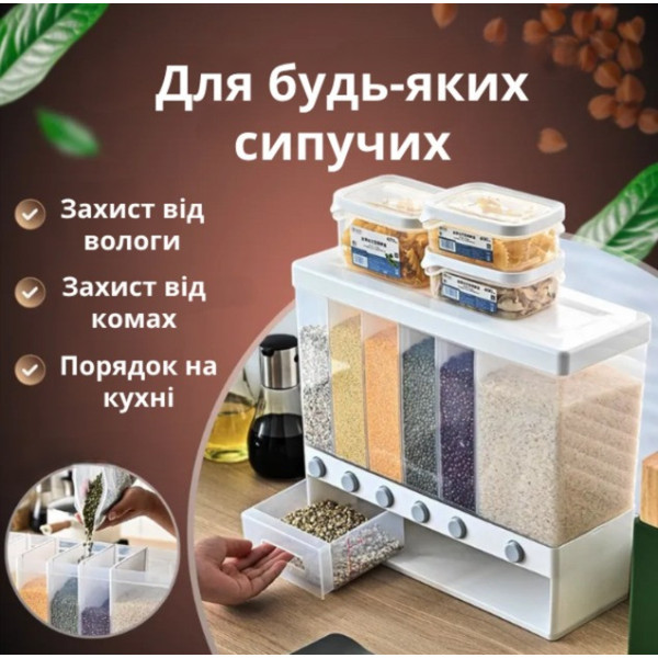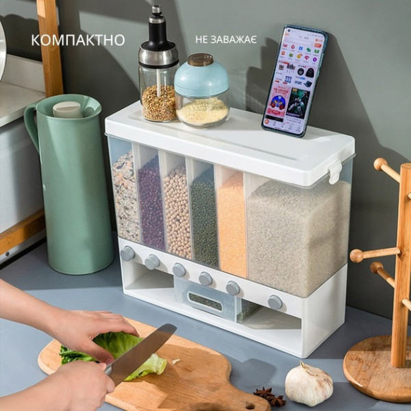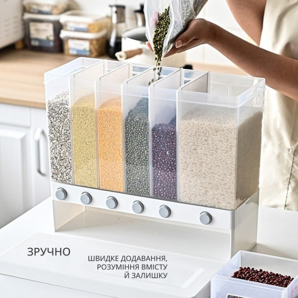 Контейнер-дозатор для зберігання круп Multiple Dispenser 6 відсіків, 10 кг