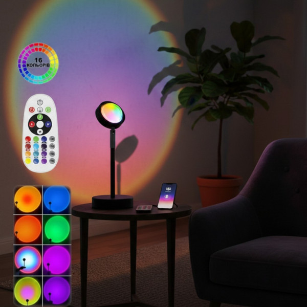 Райдужний світлодіодний світильник можна використовувати також для вітальні, як світильник для спальні, проєктор, торшер, реквізит для фотосесій.