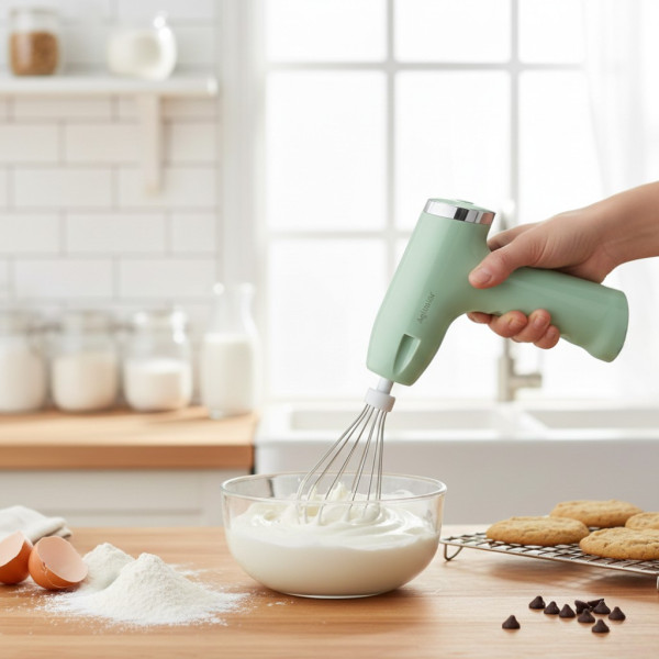 Портативний міксер Agitator RD-138 — зручний кухонний прилад, який працює від вбудованого акумулятора та не вимагає під'єднання до розетки. Завдяки компактним розмірам і легкій вазі він підходить для використання вдома, на дачі та навіть у подорожах.