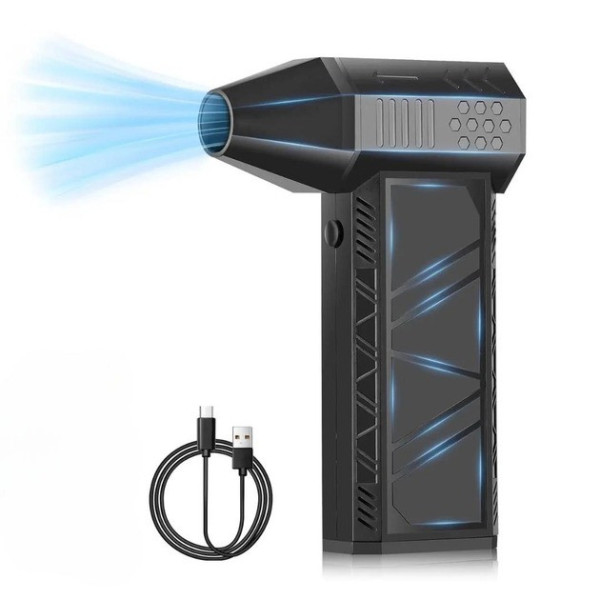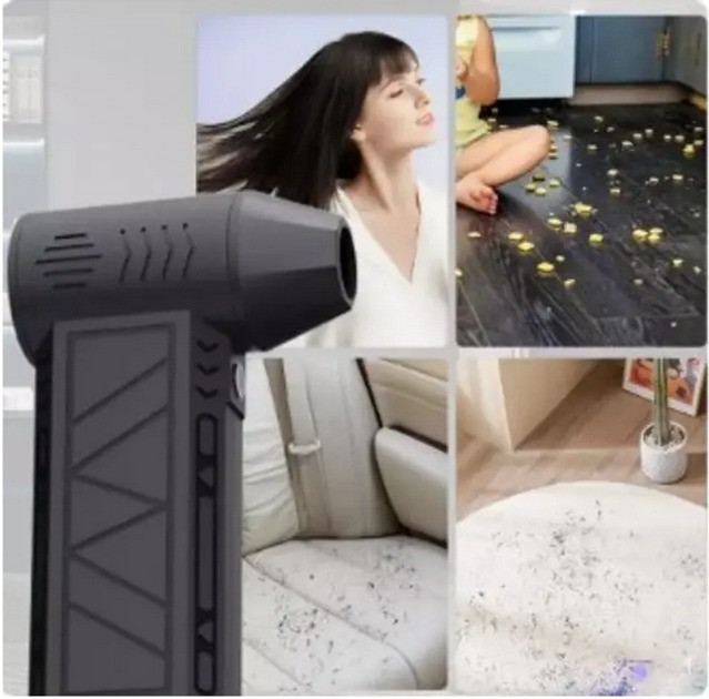 Акумуляторний міні турбовентилятор Turbo Jet Fan — це універсальний пристрій для дому, автомобіля й активного відпочинку. Завдяки потужному безщітковому двигуну з частотою обертання до 130 000 об/хв і швидкості повітряного потоку до 52 м/с він ефективно видаляє пил, крихти та сміття навіть із найбільш важкодоступних місць.