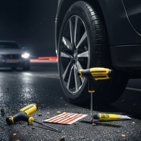 — незамінний комплект інструментів, призначений для ефективного та швидкого усунення проколів у безкамерних шинах. Завдяки цьому набору ви зможете самостійно ремонтувати шин без потреби звертатися до фахівця або витрачати гроші на нові шини.