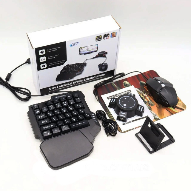 Ігровий комплект клавіатура та миша 5в1 MOBILE GAME COMBO PACK дає змогу Вам швидко та якісно керувати грою й проходити навіть найважчі рівні. Підходить для Android, IOS (IOS до 13.4) и Windows 7/8/10 РС