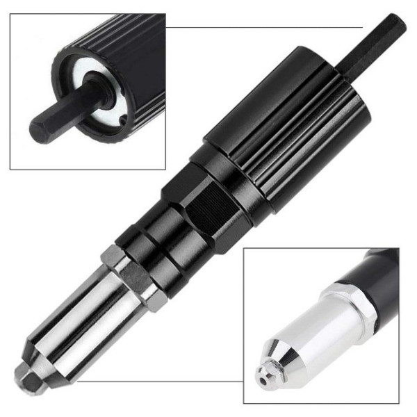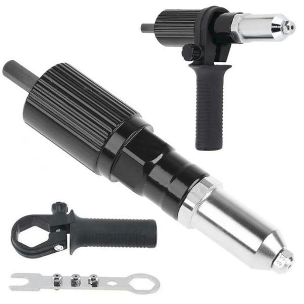 Електричний заклепувальний пістолет-адаптер для дриля та шурупокрута — це зручне та практичне рішення, яке перетворює ваш шурупокрут на потужний заклепник. З його допомогою ви зможете швидко та надійно з'єднувати металеві та інші матеріали без використання громіздкого спеціалізованого обладнання.