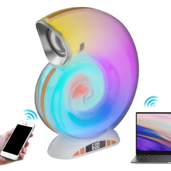 Цей портативний динамік креативно розроблений в унікальній формі раковини, що випромінює барвисте світло, що ідеально підходить для вечірок на відкритому повітрі. Завдяки передовим технологіям він робить музику природнішою і призначений для різних пристроїв, як-от смартфони та планшети. Його компактний і легкий дизайн дає змогу легко носити із собою куди завгодно.
