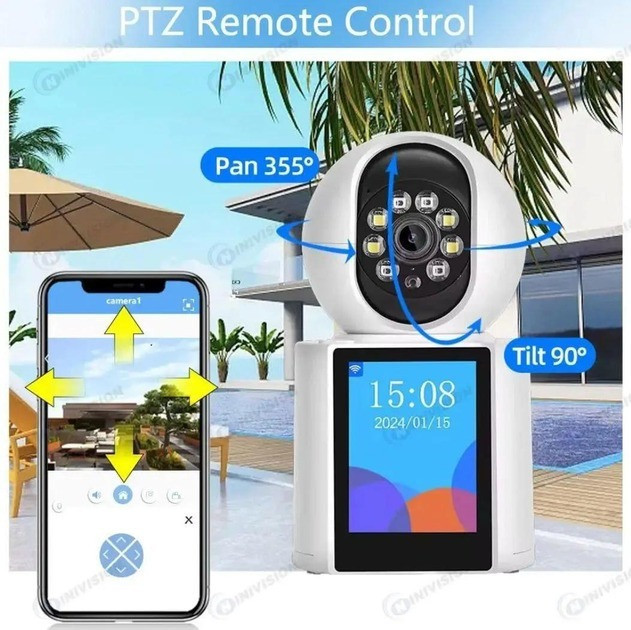 Настільна відеоняня ICSEE V1-20C — сучасна кімнатна камера з можливістю віддаленого контролю через смартфон або ПК. Камера обладнана обертовим механізмом: поворот на 355° за горизонталлю та нахилом на 120° за вертикаллю забезпечують широкий огляд приміщення. Пристрій підтримує microSD карту до 64 ГБ для локального запису без під'єднання до інтернету.