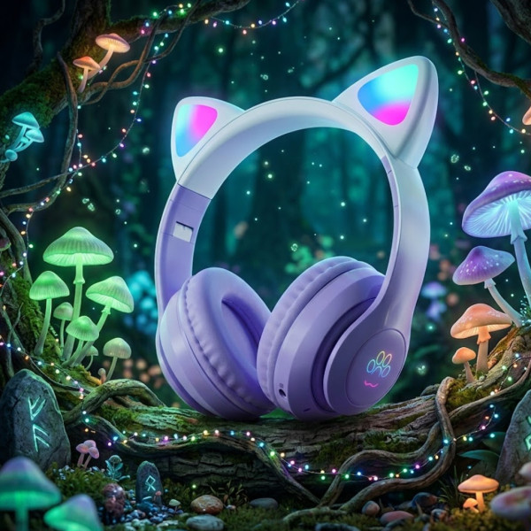 Крім простого естетичного вигляду, створюється приємний світловий ефект через те, що самі вушка світяться. Бездротові навушники Wireless Headset Cat з мікрофоном озброєні чудовим звучанням без критичних спотворень, тому стануть оптимальним супутником для дівчат, для дітей. За виглядом акустичного оформлення це закриті навушники. Висока чутливість і вбудовані потужні динаміки гарантує об'ємність звуку та глибокі баси. Самі ж навушники забезпечені системою звукозаглушення і м'яко облягають вуха, не натираючи та не створюючи дискомфорту. Діапазон відтворюваних частот — від 20 до 20 000 Гц, що повністю охоплює можливості людського слуху.