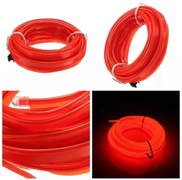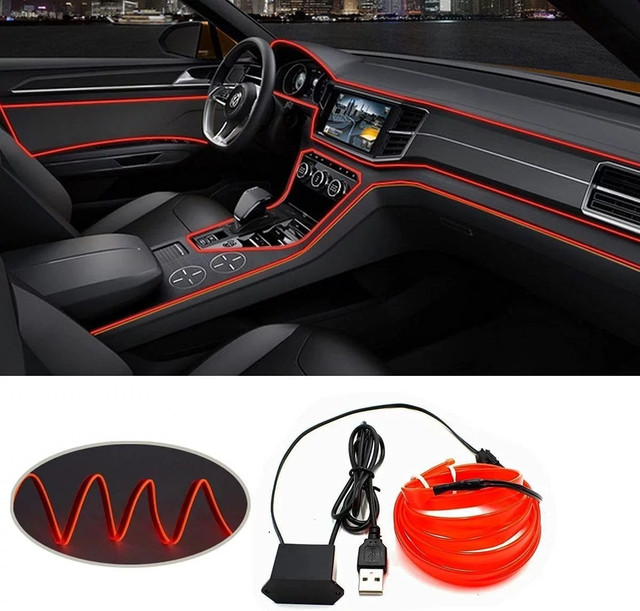 Гнучка неонова підсвітка — стильне та практичне рішення для тюнінгу інтер'єру автомобіля. Стрічка завдовжки 5 метрів з холодним світінням і крайкою (кантом) дає змогу підкреслити вигини передньої панелі, дверних карт та інших елементів салону, створюючи ефект м'якого неонового освітлення.