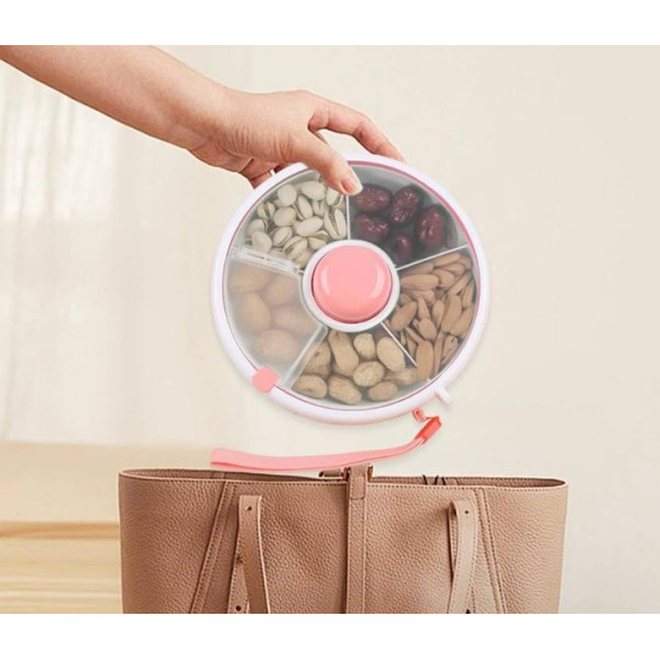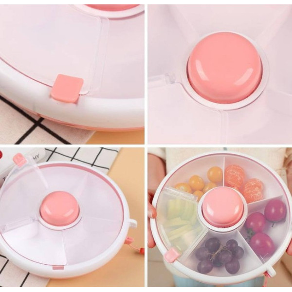 Обертовий ланчбокс AND 130 з 5 відділеннями — це практичне рішення для зберігання й подавання перекусів, фруктів, горіхів і снеків. Діаметр 18 см і висота 6 см роблять його компактним і зручним для сумки або рюкзака.