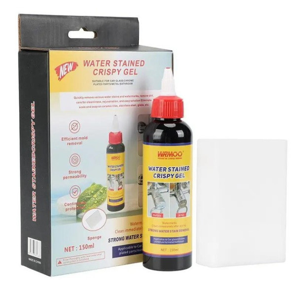 Очисний гель WRMOO 150 мл із губкою — це ефективний і зручний засіб для видалення застарілих плям від води, вапняного нальоту та мильних відкладень на кухні та у ванній. Завдяки потужній гелевій формулі засіб глибоко проникає в забруднення, швидко розчиняючи навіть найстійкіші відкладення й повертаючи поверхням їх первинний блиск.