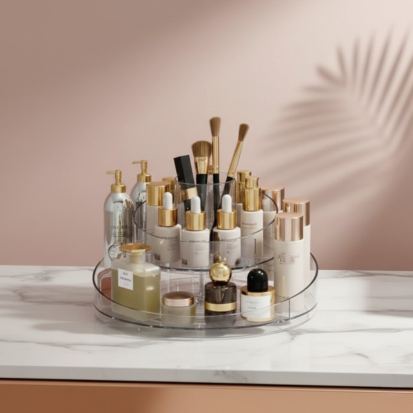 З інноваційною конструкцією захисту країв органайзер запобігає випадковому падінню предметів, забезпечуючи безпечне й акуратне зберігання. Багатовідсекційна організація допомагає класифікувати та розмістити косметику так, щоб вона була легкодоступною, а функція обертання на 360 градусів робить використання зручним і ефективним у повсякденному житті.