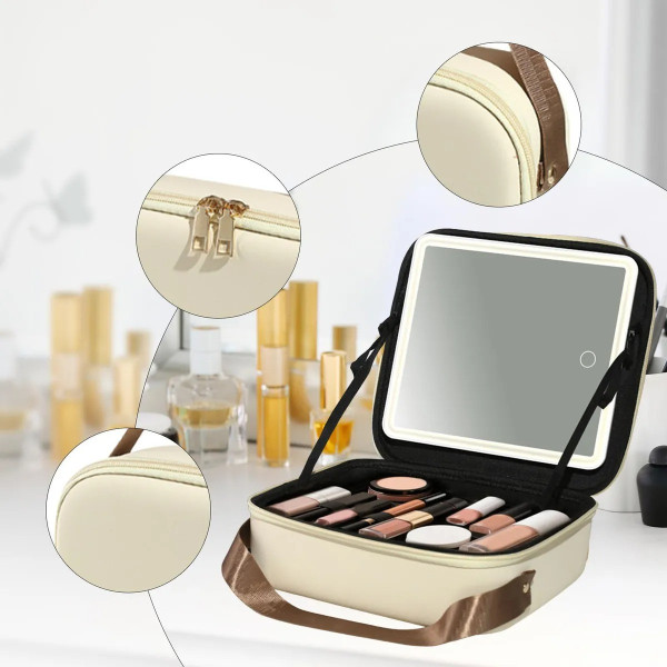 Органайзер для макіяжу з дзеркалом і LED-світлом дорожній бежевий