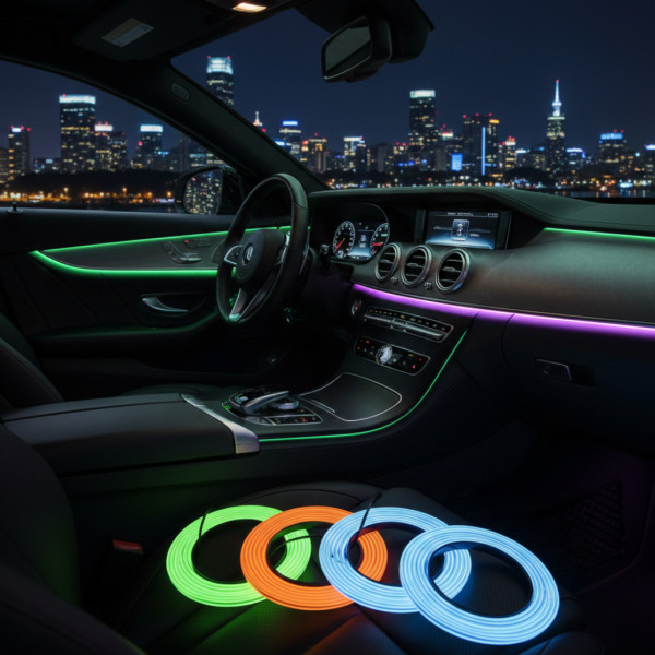 Гнучкий холодний неон із кантом — чудове рішення для тюнінгу інтер'єру автомобіля. Неоновий молдинг використовується для оздоблення салону, виділення контурів, а також для підкреслення вигинів передньої панелі автомобіля, дверних карт та інших елементів салону. Електролюмінесцентна стрічка створює холодне та не яскраве "неонове" освітлення, тому може слугувати як підсвічування салону автомобіля.