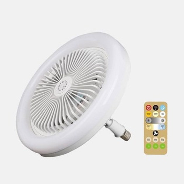 Підвісна світлодіодна лампа з вентилятором і пультом керування, 3 режими швидкості та освітлення, 20.5 Вт біла