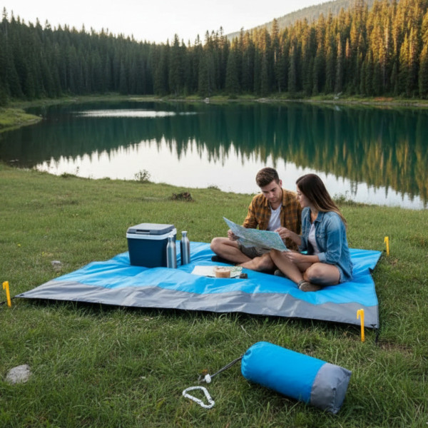 - Багатофункціональність: можна використовувати як пляжну підстилку, сонцезахисний козирок, тент брезент.