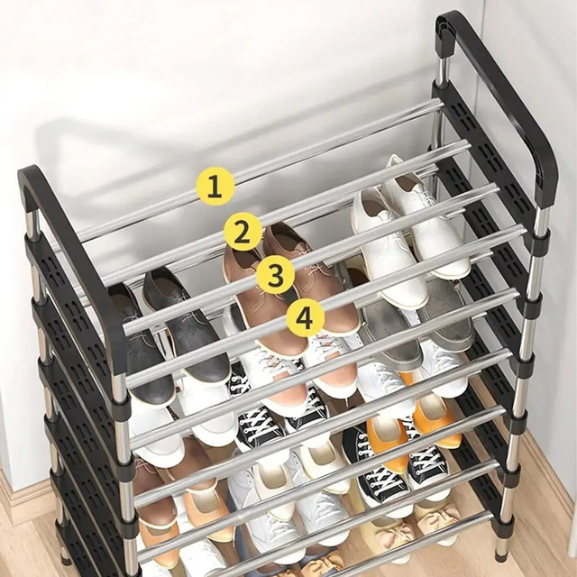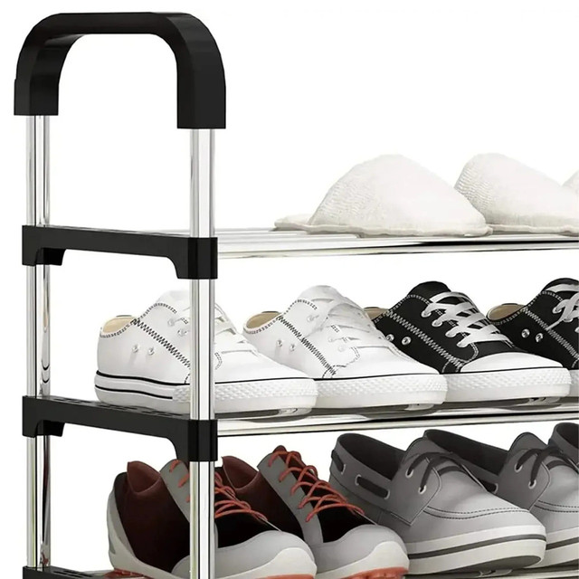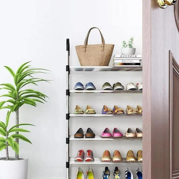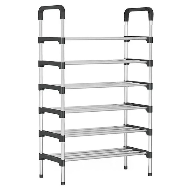 Розбірна полиця для взуття RD-9005 на 6 ярусів — зручне та практичне рішення для передпокою, гардеробної, офісу або дачі. Завдяки вертикальній конструкції вона заощаджує місце та дає змогу зберігати до 18 пар взуття: від повсякденних кросівок до зимових чобіт.