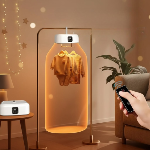 Ця сушарка ідеально підходить для квартир, гуртожитків, дач, кемпінгів і подорожей. Вона легко встановлюється, не займає багато місця й забезпечує зручність використання завдяки пульту дистанційного керування та вбудованому таймеру.