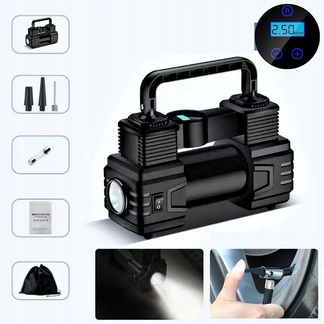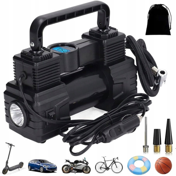 Портативний автомобільний компресор із цифровим дисплеєм, LED-ліхтариком і автовимкненням для шин і м'ячів