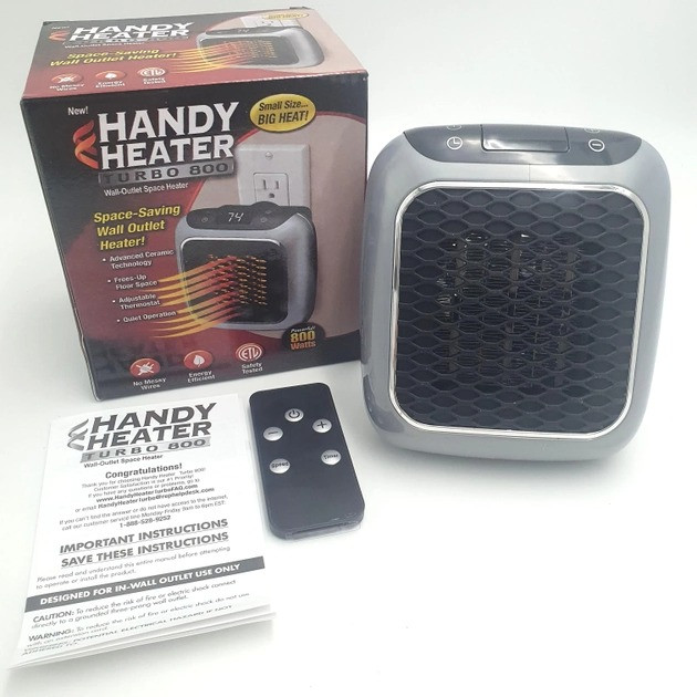 Портативний нагрівач Handy Heater під'єднується безпосередньо до розетки та миттєво зігріває повітря в приміщенні! Він позбувся всіх вад своїх габаритних попередників, зберігши потужність нагрівання! Включається неймовірно просто, натисканням кнопки! Забудьте про дроти — Handy Heater під'єднується безпосередньо до розетки. Безпечний керамічний нагрівальний елемент, що не нагрівається, пластиковий корпус — запорука вашого комфорту й безпеки!