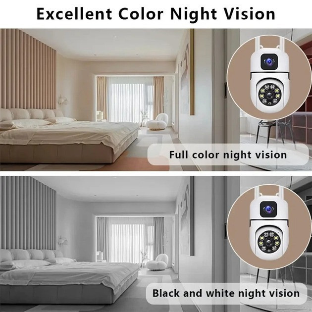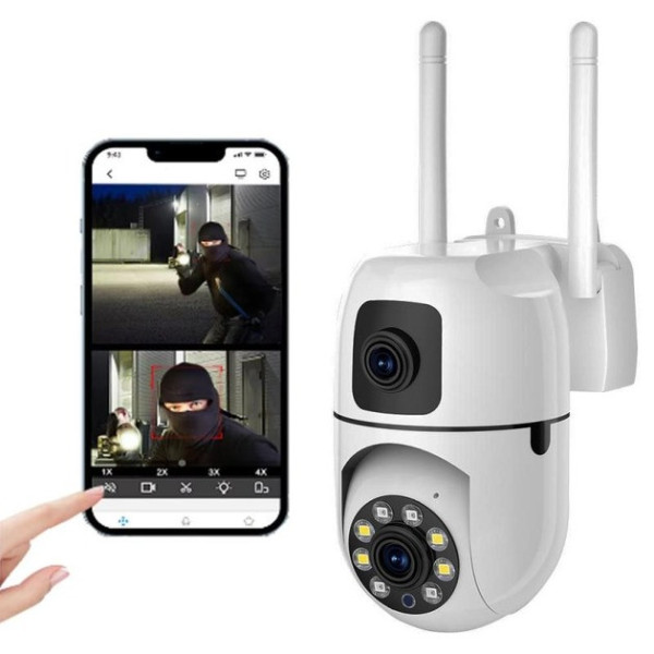 Поворотна вулична IP-камера Dual Lens E10 — сучасне рішення для відеоспостереження з високою деталізацією й інтелектуальними функціями. Камера обладнана подвійним об'єктивом 8 МП, що забезпечує широкий кут огляду та чітке зображення. Підтримка повороту на 355° і нахилу на 90° дає змогу контролювати всю територію. Автоматичне відстеження руху, кольорове нічне бачення та двосторонній аудіодзвінок роблять пристрій зручним для дому, двору, офісу, складу або дачі.