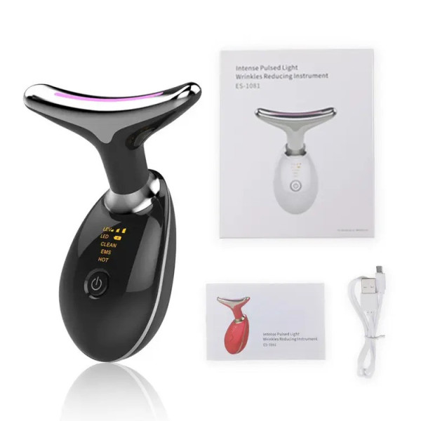 Ліфтинг-масажер для шиї та обличчя ES-1081 — це сучасний пристрій для комплексного догляду за шкірою в домашніх умовах. Він поєднує в собі мікрострукову терапію, LED-світло, іонотерапію й термомасаж, забезпечуючи видимий ліфтинг-ефект усього за 10 хвилин на день. Компактний та ергономічний прилад допомагає підтягнути шкіру, зменшити зморшки, позбутися другого підборіддя та поліпшити тонус шкіри.
