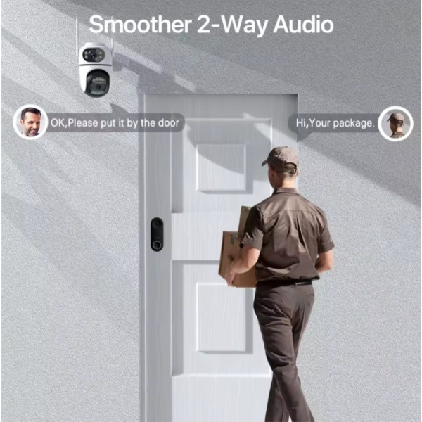 Двосторонній аудіозв'язок — вбудований мікрофон і динамік дають змогу не тільки чути, але й говорити через камеру.