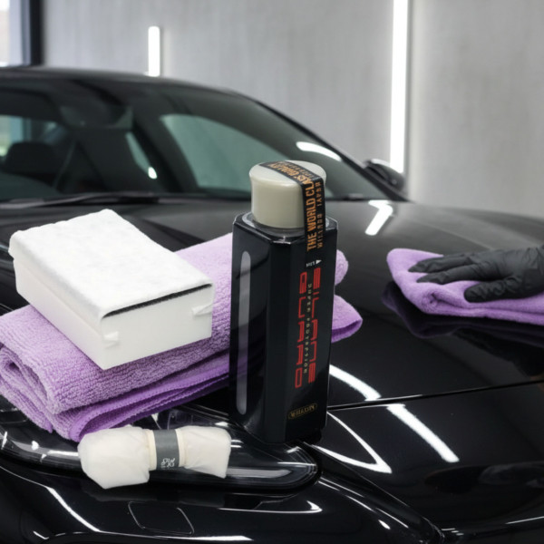 Склад: полімери на основі силана, розчинник нафтовий, затверджувач. Засіб не можна наносити на пластикові поверхні, бампер, шини, фари, гумові та хромовані частини, скло. У разі потрапляння терміново протерти вологою тканиною. Під час нанесення рідини на кузов не залишати на довгий час без полірування.