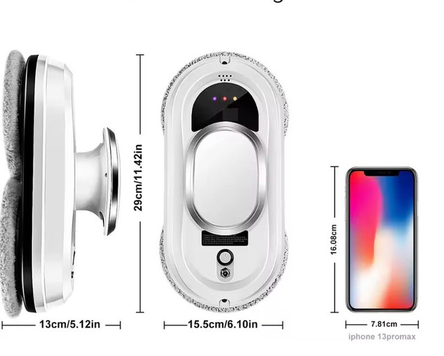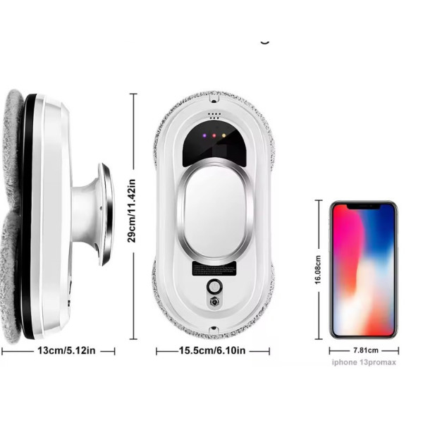 автоматичний склоочисник, який надійно фіксується на вертикальних поверхнях завдяки потужному всмоктуванню до 3000 Па й очищає навіть важкодоступні місця.